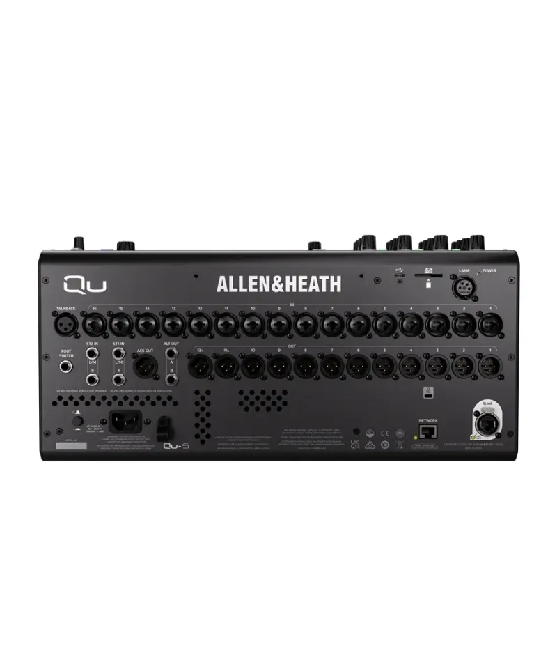 The legendary digital mixer of Allen & Heath returns to a completely new version, enhanced by a 96kHz XCVI core that enables DEEP Processing features, with an increased number of channels, totally flexible patching on four customizable layers, a redesigned user interface, important hardware improvements, extended connectivity and Dante integration option. The new Qu preserves the aesthetics and form factor that have made the original series iconic, but introduces a series of innovations that significantly improve sound performance and mixing experience. Audio quality is guaranteed by up-to-date microphone preamps and high-performance AD/DA converters at 96kHz, working in perfect synergy with the XCVI core to return a crystalline sound, preserving every detail of the source. Each channel now has a dedicated display showing name, channel type or input number, accompanied by a colour level indicator for immediate reading. The touchscreen has been completely redesigned to offer a smooth, fast and intuitive interaction. The version Qu-5D includes a 16 × 16 to 96khz or 48khz dante interface, perfect for integration into complex installations or large-scale systems. The entire Q series is equipped with extremely versatile recording and reproduction options, including a USB audio interface-C 32 × 32 integrated, support for multitrack recording on SD card and simple stereo recording via USB port-A, offering total flexibility in any operational context. Remaining faithful to the philosophy "Walk up and mix" which has decreed the success of the first generation, the new qu further improves the simplicity of use thanks to four fully configurable layers, assignable softkeys to optimize workflows and options of Flexible routing that are flanked by the classic scheme 1:1 of the original series, all managed by a modern and reactive user interface. Through the SLINK port, Q can connect to the Everything I / O family of stage box and expansion racks, allowing a modular and customizable configuration, and can be interfaced directly with other Allen & Heath consoles, managing up to 128 × 128 audio channels at 96khz. Compatibility with Deep Processing allows the use of acclaimed plugins and rackextrous effects of the DLive series, bringing on platform Quing a world tour. Intelligent assistants derived from the CQ series are not lacking, designed to speed up setups and reduce stress in preparation. The Gain Assistant quickly and accurately sets the optimal gain level for one or more channels, constantly monitoring the signal level during execution to avoid unwanted peaks. The assistant feedback, easy to use, detects and automatically removes the problematic frequencies with the use of up to 16 filters per output, guaranteeing a clear and unexpected mixing. To complete the equipment there is an automatic 32-channel mic mixer, completely integrated into the system and without additional latency, ideal for conferences, talk shows and television productions, eliminating the need for external DSP or additional plugins.