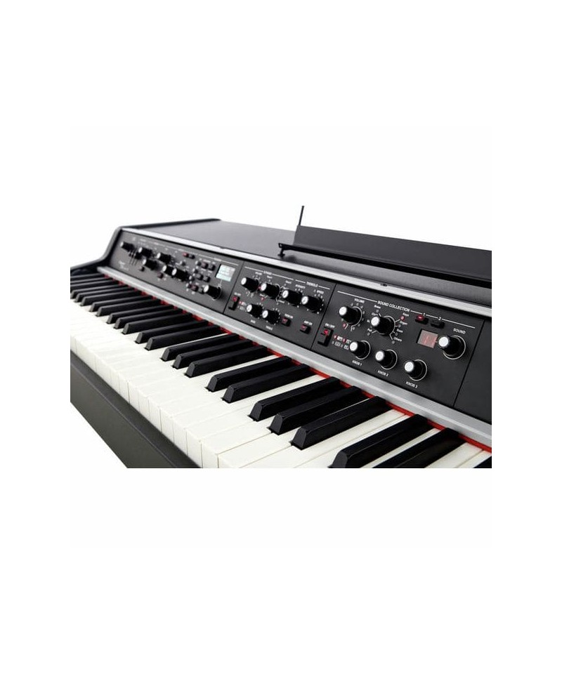 The new legend '70s introduces the concept of Modular Stage Piano, which offers unprecedented possibility to customize your instrument with different sound modules equipped with cutting-edge sound generators, including physical modeling. The modules can be easily positioned and exchanged on the front panel, according to your personal musical needs. Currently 5 modules are available for the plan, while others will be available in the near future in the "Always Growing" family. According to the general style of the Legend line, Viscount has designed these products with a "retro aesthetic" without giving up the most advanced features required by a modern instrument. Physis, the exclusive patented physical modeling technology creates sound generation, while the control interface offers many direct controls, but also a useful display for programming. In the models of the line there are several weighed keyboards, while the exclusive audio modules allow you to customize the instrument based on your current or future needs. The new Piano Viscount Legend '70s stage, designed and built in Italy, offers incredible expressive capacities with a customizable interface in a perfect portable solution. The combination of powerful easy-to-use audio modules in a compact and vintage cabinet offers to demanding musicians a uncompromising tool. The legend '70s introduces, for the first time, the concept of modular flat internships. Based on your needs, you can now choose the right combination of sound generation modules with dedicated knobs and buttons. Currently, the Electric Piano, Acoustic Plan, Clavi and Sound Collection modules are available, while many others will be available in the future, within the "ever-increasing" family. In addition to the Program and Effect Standard modules, an optional external devices module available to make the instrument flexible and very powerful.