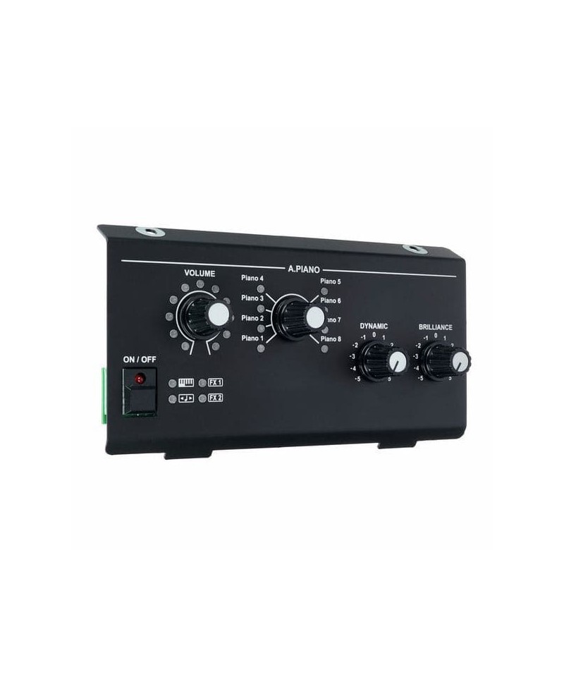 - Controls: On / Off, Volume, Selector 8 floor, Dynamic, Brilliance