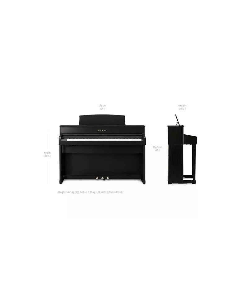 Taking its name from the second president of the company, the range of luxury pianos Shigeru Kawai was conceived as the next step in the evolution of the art of the piano. Each first-class instrument is handmade by expert pianos artisans, using the best materials available to ensure optimal touch, sound and artistic expression. Widely considered as "the best piano of Japan", the tail piano SK-Ex of Punta embellishes the stages of concert halls and musical institutions around the world, receiving universal plaus for its tonal clarity and the exceptional dynamic range. The magnificent sound of the SK-Ex is at the center of the CA701, with the latest model characterized by two distinctive recreations of this unmatched instrument.