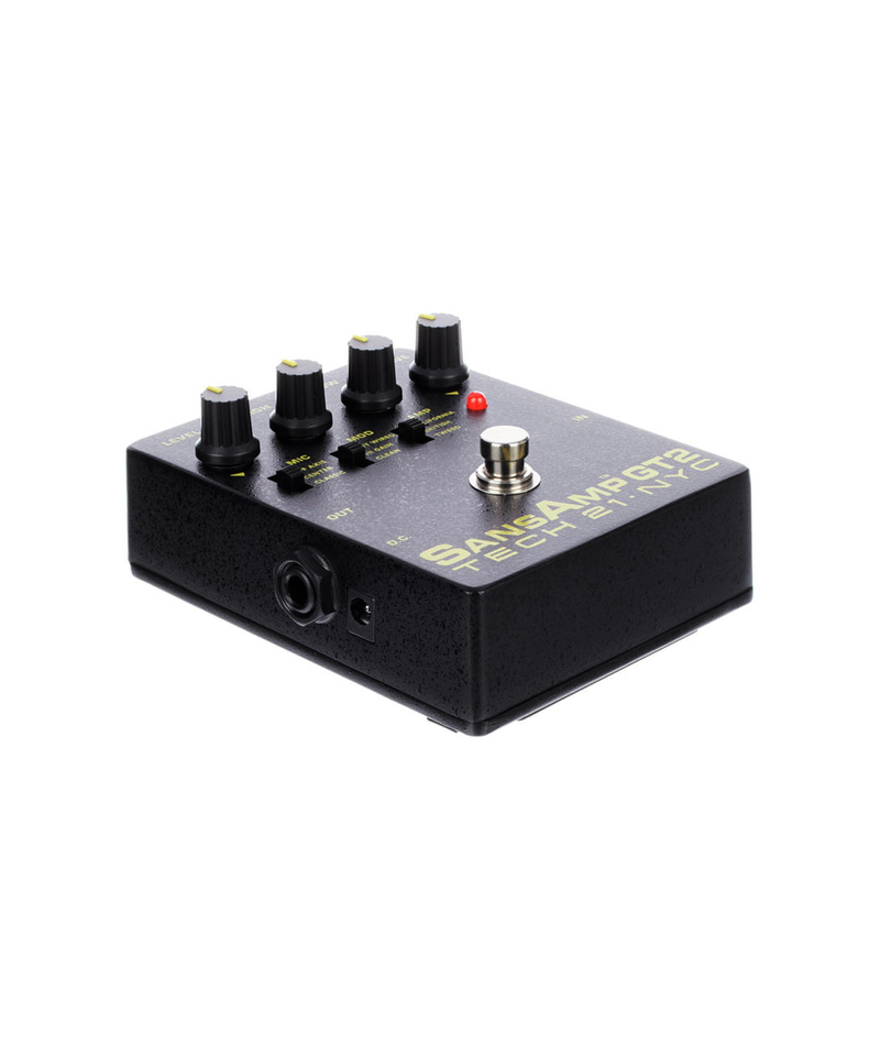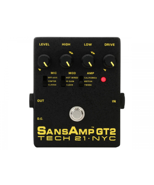 E'Extremely easy to create favorite settings. It has a lot to do with the nature of the three 3-way Voicing switches of the GT2. First of all, you can choose from the styles of valvular amplifiers, choosing from the iconic American tweed sound, the classic English drive or an aggressive high sound-Californian style gain. Then choose between the standard valve configuration, a Gain Boost that you would get if I had launched an extra 12ax7 in your preamplifier or a hot amplifier model-Rod with a scoop of the average range. Finally, you can choose the placement of your virtual microphone, with the choice between a classic full range sound or close-up microphonage both at the center and off-axis. Complete it with a highly effective 2-band EQ and a wide range of gains and drives, and no wonder that Sansamp GT2 has been nicknamed the original Swiss army stompbox