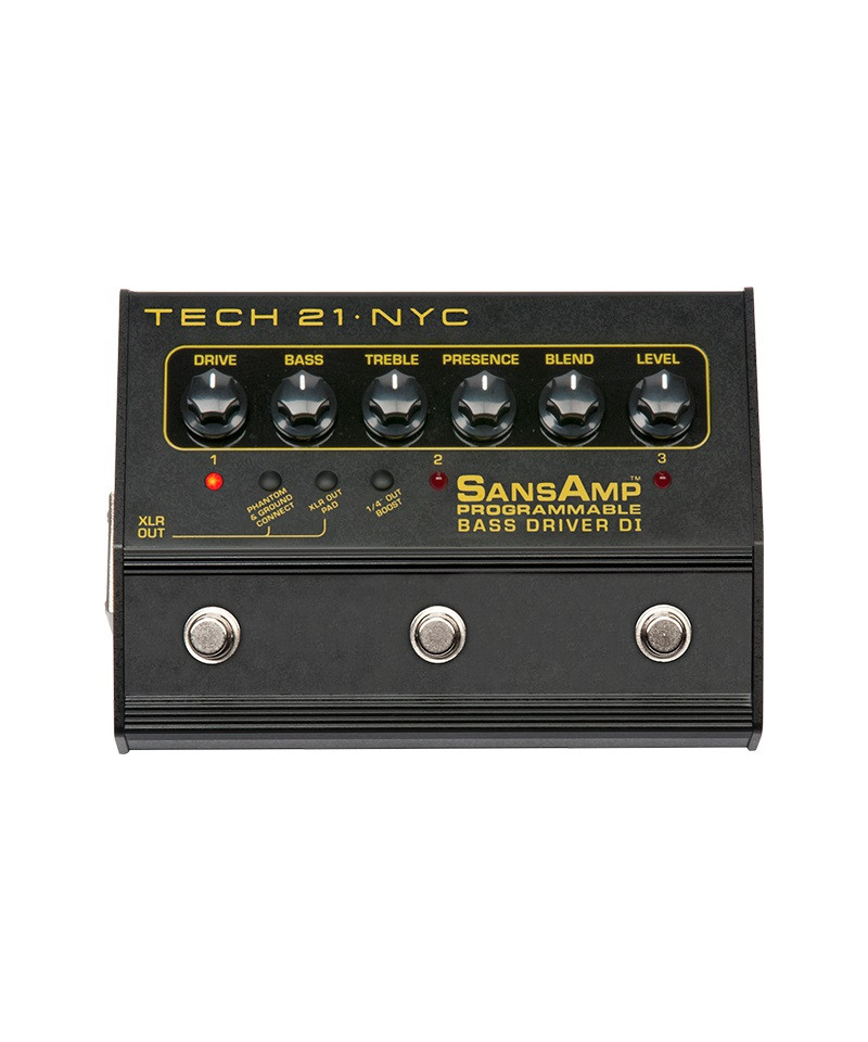 As the TRI-A.C. For guitar, three hot sounds available right at the tip of your feet. The fully analogical circuitry presents the same controls as its single channel predecessor: Drive, Bass, Treble, Presence, Blend and Level.