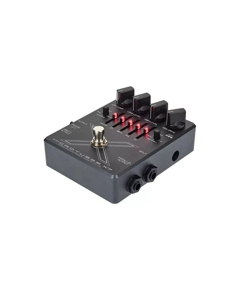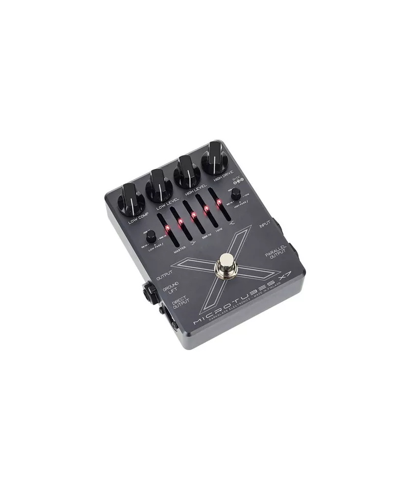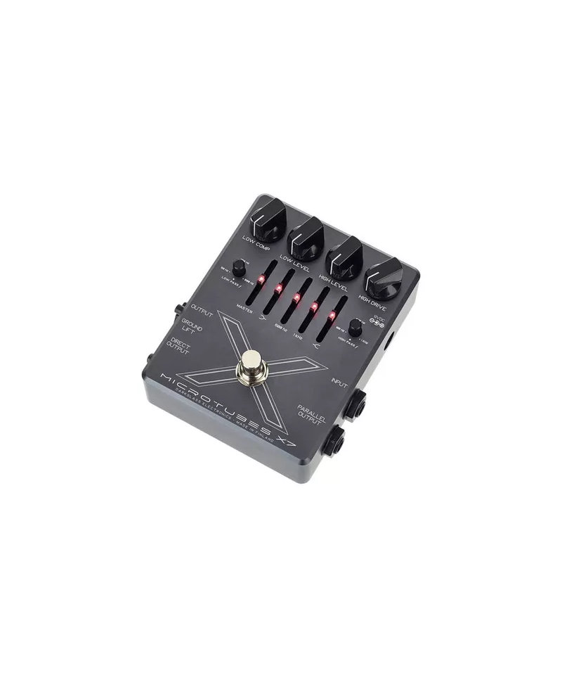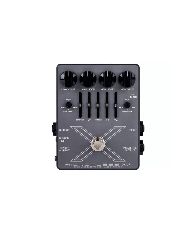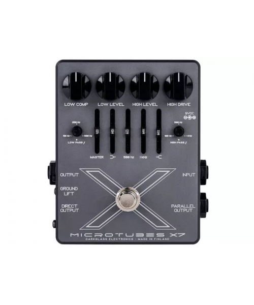 Darkglass's bass MicroTubes X7 preamplifier represents the recipe for powerful distorted low downturns that keep the impact of low frequencies. The key to distorted incisive bass allow medium and highs to provide a harmonic distortion, leaving the fundamentals solid and without distortion. The X7 microtubes pedal reaches this result by subdividing the signal to two variable filters before the Gain stage, so you can shape your unique distorted sound with the right adjustment. Complete with 4-band graphic EQ to perfect the media character character, the low DarkGlass Microtube X7 pedal preamplifier offers powerful, thesis sounds defined with any bass. Before distorting the sound, the preamplifier for low Darkglass Microtubes X7 divides the signal to two and filters them both. A filter passes-Low variable allows you to choose how much of the remain clean and incisive Remarr signal, while a filter passes-High determines the amount of sound that will be sent through the drive circuit. The independent level controls for each signal path allow everyone to be balanced.