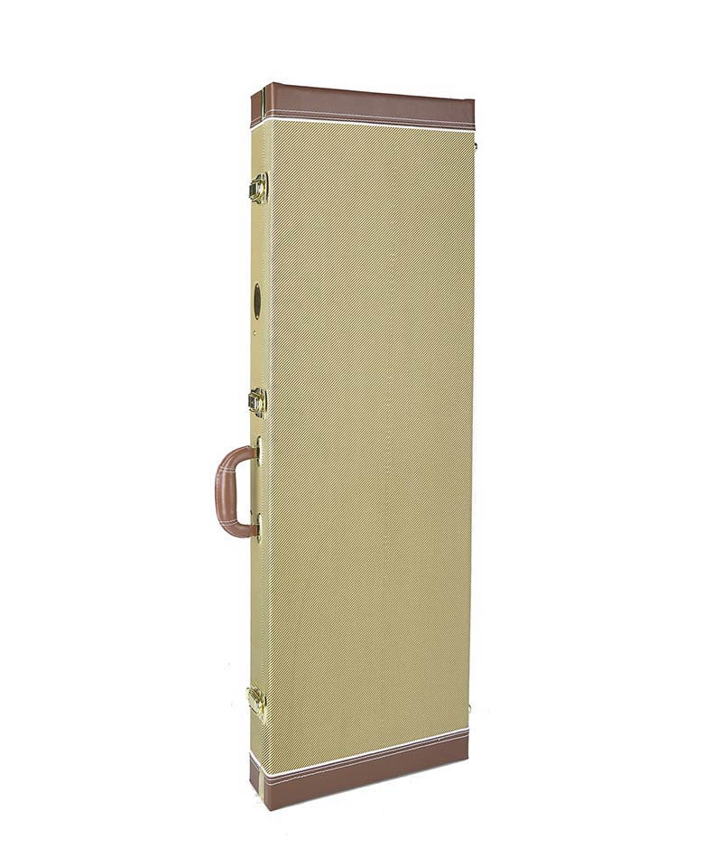 Electric guitar case, in tweed. Rectangular model. Equipped with a large internal door compartment.