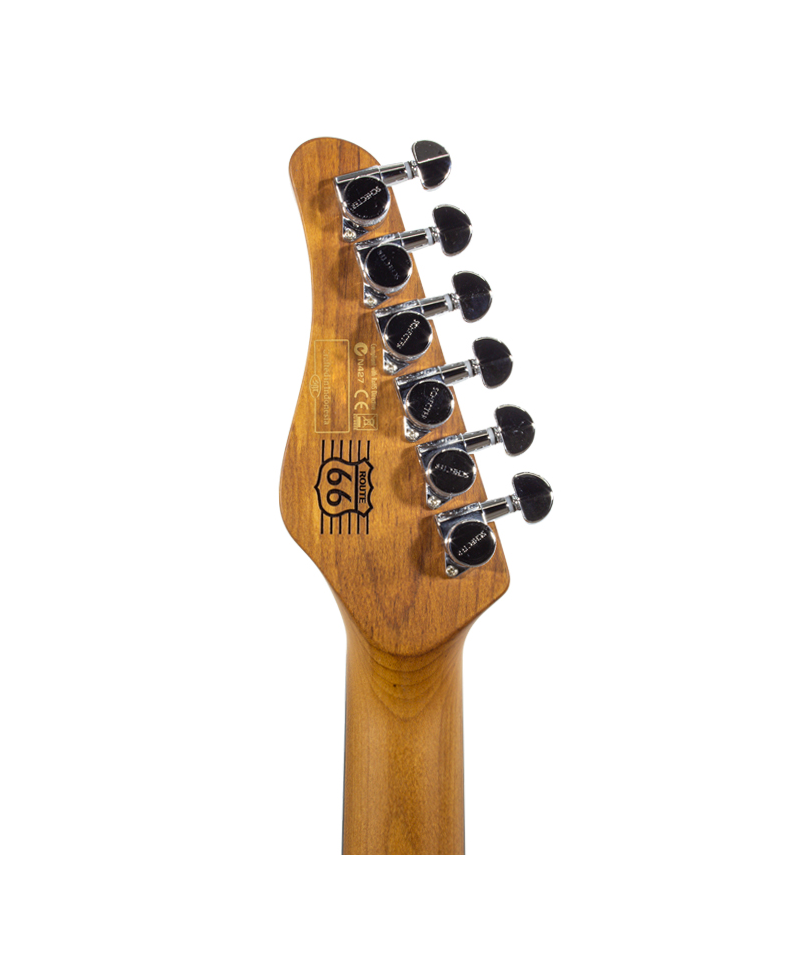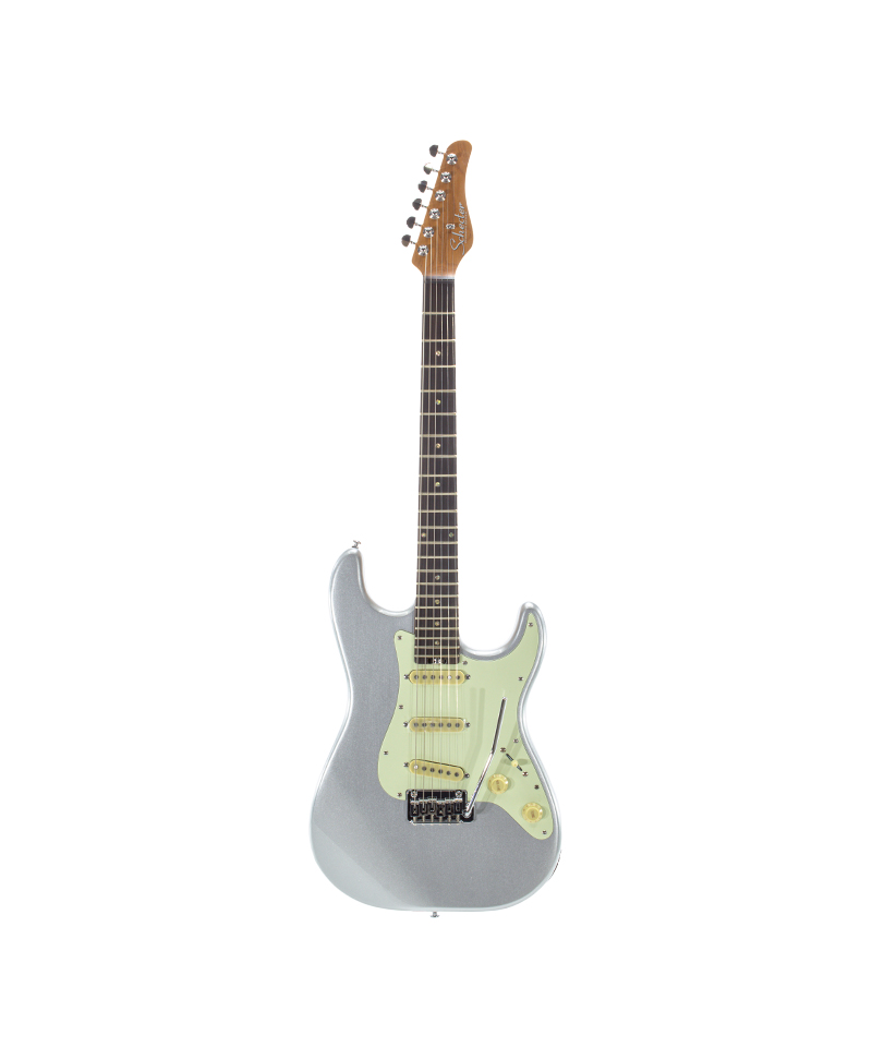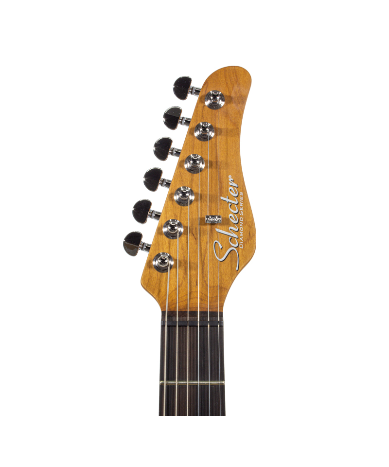 Bolt construction-On, alder body, 25.5 "scale, Radius 14", Capoto Graphtech XL Black Tusq and self-locking mechanics. Pickup Schecter Pasadina (according to configuration), volume and tone (push / pull), 5-way selector and bridge Schecter Diamond Vintage tremolo. This is the edge of the six new Route 66 Scherter Route, to which different specifications are added as a handle, keyboard and pickup configuration