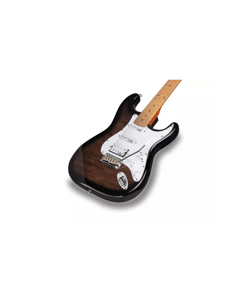 E'An incredible series that combines the sound quality of montano embellished by a flamed maple top, the beauty of the Roasted maple, the original Wilkinson pick up and bridge, self-locking mechanics and the meticulous set-up. The self-locking mechanics made in Taiwan and the original Wilkinson bridge are synonymous with security and stability, while the pick up Wilkinsons sculpt that sound that became the term of comparison in the rock, blues and funk. The esplicable humbucker with Push Pull system further expands the range of an instrument born for guitarists who know appreciate finishes and higher level materials.