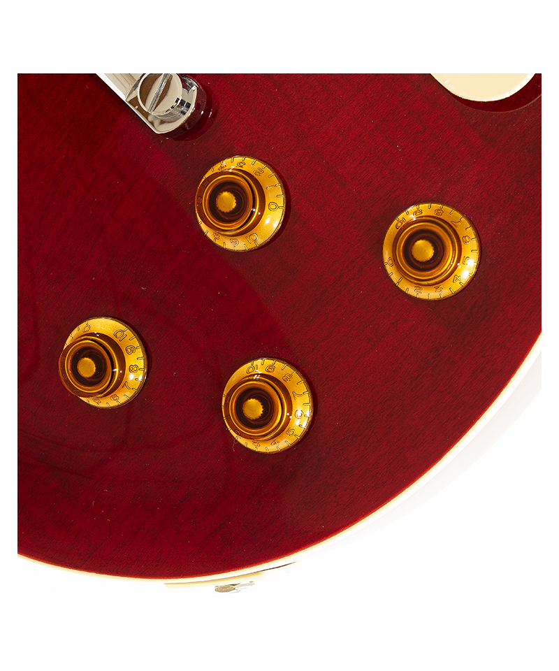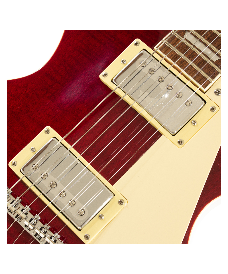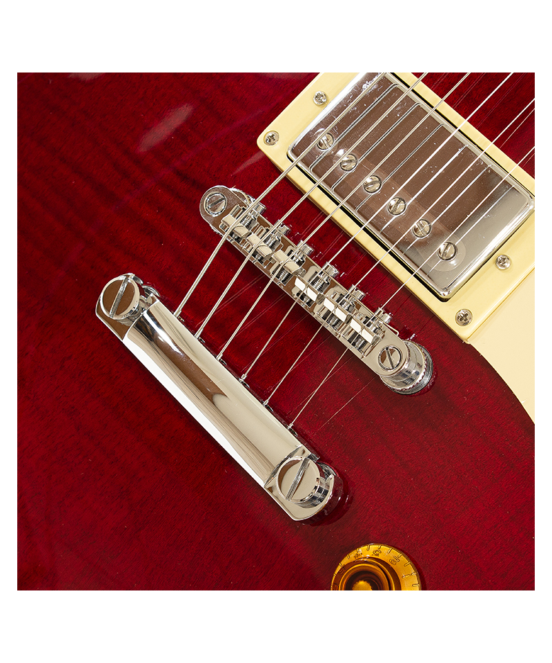 The Tokai uals62f Traditional Les Paul Style See-Through Red is an electric guitar of the Traditional Series, designed with the classic Les Paul design and subjected to the rigorous quality controls of Tokai Japan. This model stands out for the AAAA flamed maple top, which gives it a unique and captivating aesthetic, combined with a powerful and versatile sound, ideal for musicians of all levels. The Tokai uals62f LP Style See-Through Red is the perfect choice for those seeking a combination of extraordinary aesthetics, excellent constructive quality and the classic Sound Les Paul.