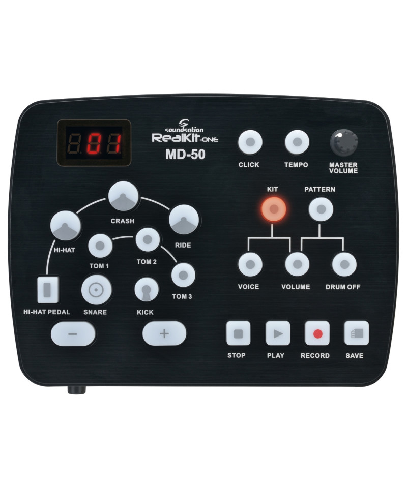 REALKIT ONE A latest generation electronic drumset designed for the drummer who wants to approach the study of the instrument or simply to daily practice in situations in which noise remould. The pads are velocity sensitive and offer a dynamic comparable to traditional drumkits. To ensure the maximum expressiveness, the snarling equipped with a Real Feeling pad and has 2 different response zones (head + rim). The crash plate offers the possibility of immediate stop (choke) as in higher level drumkits. The control unit provided with a 3 unit LCD display and an User user interface-friendly. 20 presets offer quality sounds for all tastes and generates all editable individually with 184 stamps available. For your practice sessions, there are 50 demo songs and the metronome function. The pre rack-Assembled drastically reduces the assembly times, guaranteeing maximum functionality even in the scope of live sessions.