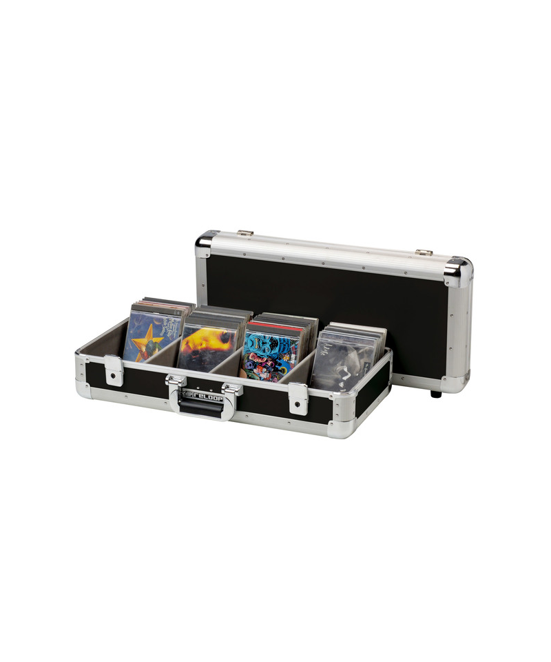 Professional suitcase for the transport of 100 cds divided into 4 compartments and with removable top. Black color.