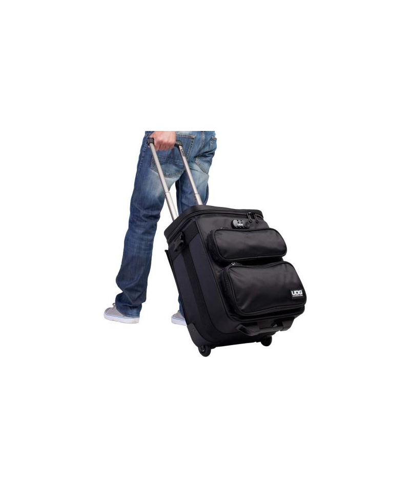 It is a trolley for DJs among the most chosen; It looks like a semi-rigid and padded bag capable of containing laptops up to 15 '', a Vestax VCI 100 or Hercules RMX type controller; Pu then contain vinyl records, audio cards, or products like Mikro / Classic MK2 Maschine, Pioneer DDJ-SP1 / Wego2, Sixty Four frogs, Ableton Push, Ni Traktor Z2, Reloop Mixage IE, Vestax Spin 2, Novation Twitch; Then presents two front front pockets to bring additional accessories.