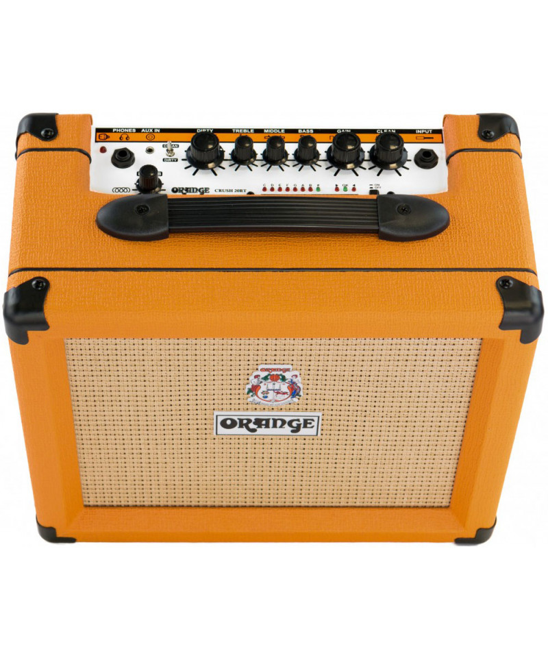 The Orange 20RT Crush is based on the TimBrical platform of the Crush 20 with even more functionality thanks to the inclusion of a lush reverberation and an integrated chromatic tuner. Like his younger brother, the 20rt Crush offers Clean and Dirty channels that can be selected by Footswitch more the new HIGH preamplifier-Gain, with a four-stage design, which offers a wide range of overdrive and distorted sounds, rich in harmonics.
