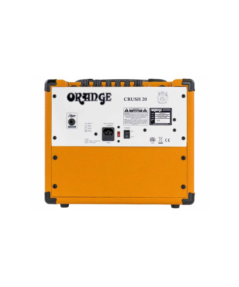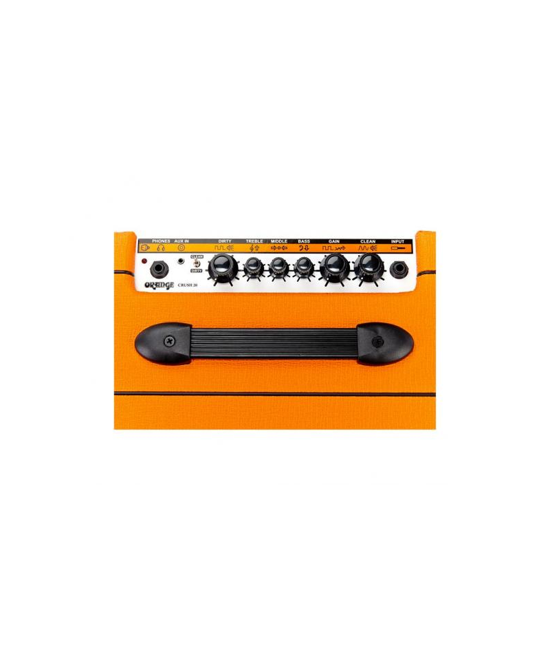 The double channel CRUSH 20 adopts an uncompromising approach to the guitar sound and encloses it into a compact and portable design. With the Clean and Dirty channels selectable the new four-stage High Gain preamplifier provides a wide palette of overdrive and distorted sounds, rich in harmonics. The punch obtained with the 8 "CRUSH 20 speaker to say the least disconcerting and denies the modest footprint of the amplifier. Equipped with an AUX in per musical bases and a CABSIM headphone output the CRUSH 20 one Obvious choice for guitarists looking for legendary Orange sound in an amplifier to practice.
