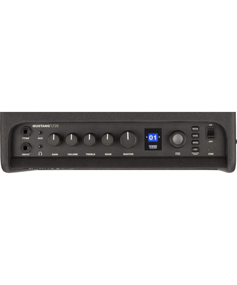 Mustang LT25 incorporates the Fender learned in decades of production of guitar amplifiers with the best sound on the planet. E'Ideal for beginners and students, with a very simple user interface and a collection of 30 presets covering a wide range of music, a "greatest hits" of electric guitar sounds. The versatile signal chain with high quality integrated amp and effects models produces surprising sounds, which makes it an amplifier for the ideal training for the home or office.