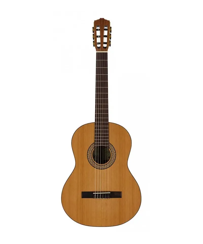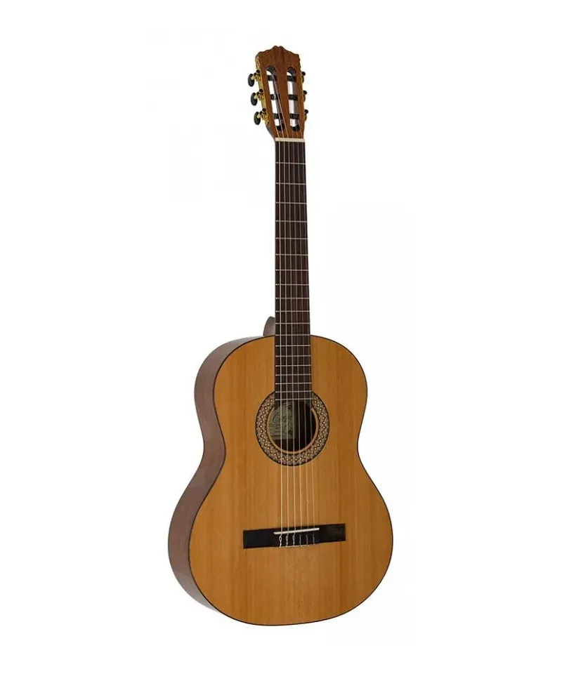 Salvador Cortez Maya C and considered one of the best classical studio 4/4 (648mm) guitars. There are many classical guitar teachers throughout Italy that they advise you for the facility with which you can play it and for sound quality. It has a harmonic floor in a solid Canadian cedar, a mahogany bottom and bands, okoume handle, rosewood keyboard and bridge, Spanish handle attack, Truss-Rod in carbon, Copper keys-2mmx1mm nickel.