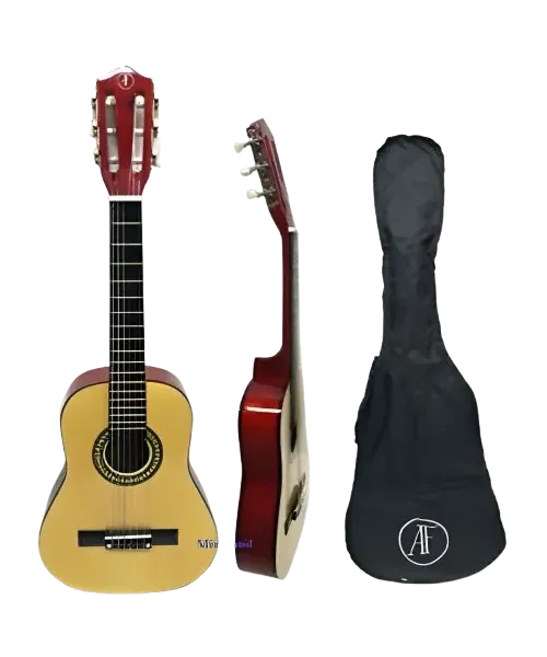 The classical guitar AF 100432 is a classical studio guitar measure 1/ 4 with bag, ideal and recommended measure for the guitar study for children up to 5-6 years of age. Not a toy but a real tool! Complete the equipment the soft bag for protection and transport on the route home - Academy of Music.