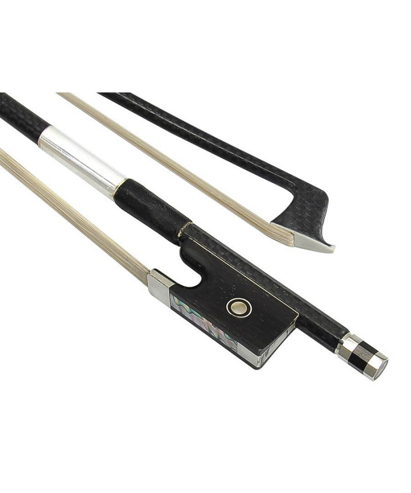 Violin bow 1/ 2, carbon fiber exposed, ebony heel, Parisian eye, completely nickel-plated frames