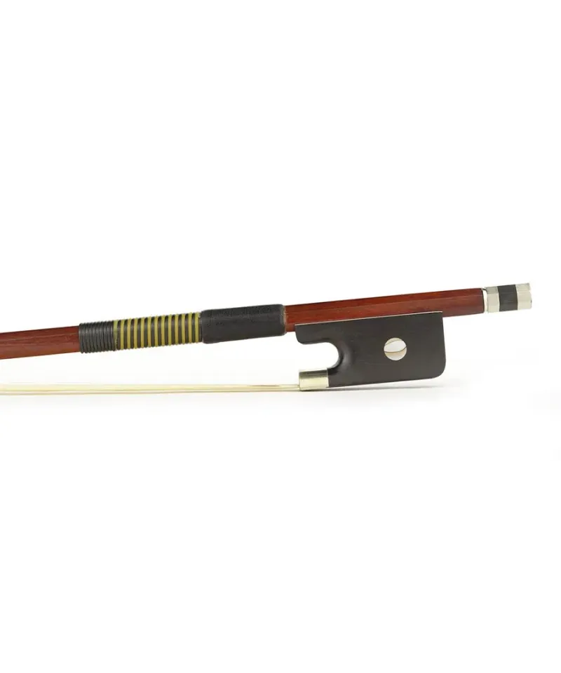 Cello bow, measure 1/ 2, built in brazil wood. Octagonal wand, ebony nose with single eye. Synthetic whale bone shoe. Bandage in synthetic turtle shell.
