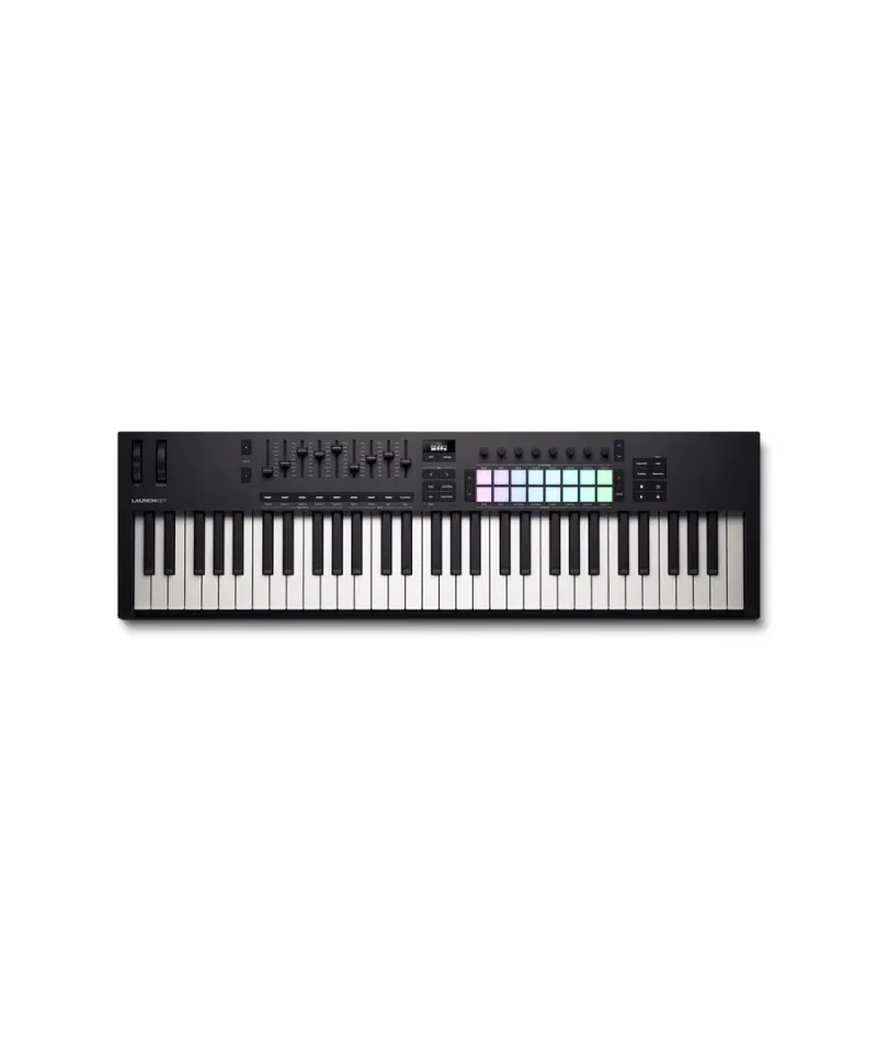 The Novation Launchkey 61 MK4 is the MIDI controller designed for musicians and producers who want a complete and versatile keyboard, ideal for working with Ableton Live and other music software. With 61 full keys-Velocity sensitive, 16 backlit RGB pads, 8 assignable rotary knobs and dedicated controls for transport, navigation and creative functions, Launchkey 61 MK4 offers a production experience and performances without limits.