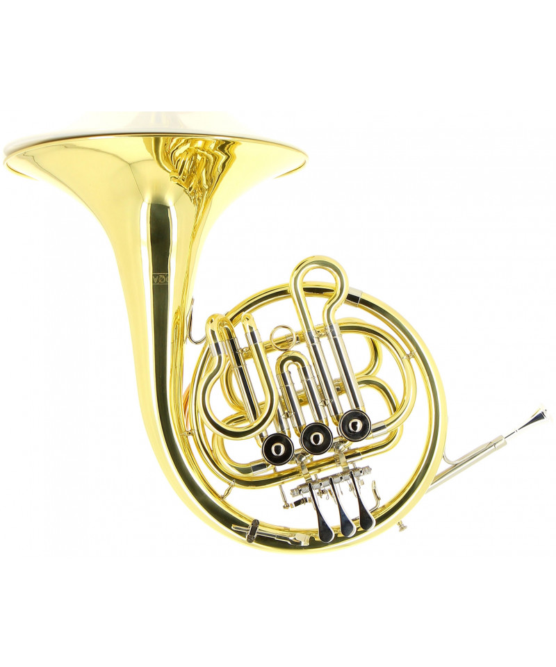 French horn in Sib. Fixed bell. Lacquered. Accessories included, mouthpiece, cleaning cloth and semi-rigid case with pockets and straps for transport. 3 year warranty.