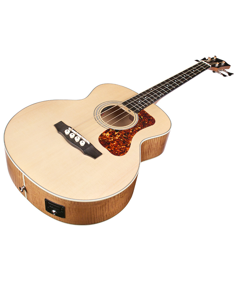 Guild has chosen a solid Sitka spruce top and a flamed maple arched background used for centuries in the construction of double basses, to give a low and unthinkable sound for such a small format. Background, bands and handles are finished with an antique satin blonde finish, which gives depth and unique character to the motifs of wood. The low and deep jumbo junior sound can be amplified or recorded using the active pickup for low fèhman specially designed for guild, with volume and tone controls. Other important features are keyboard and bridge in ebony, headboard and saddle in bone, mother-of-pearl rosette and guild logo on the scoop