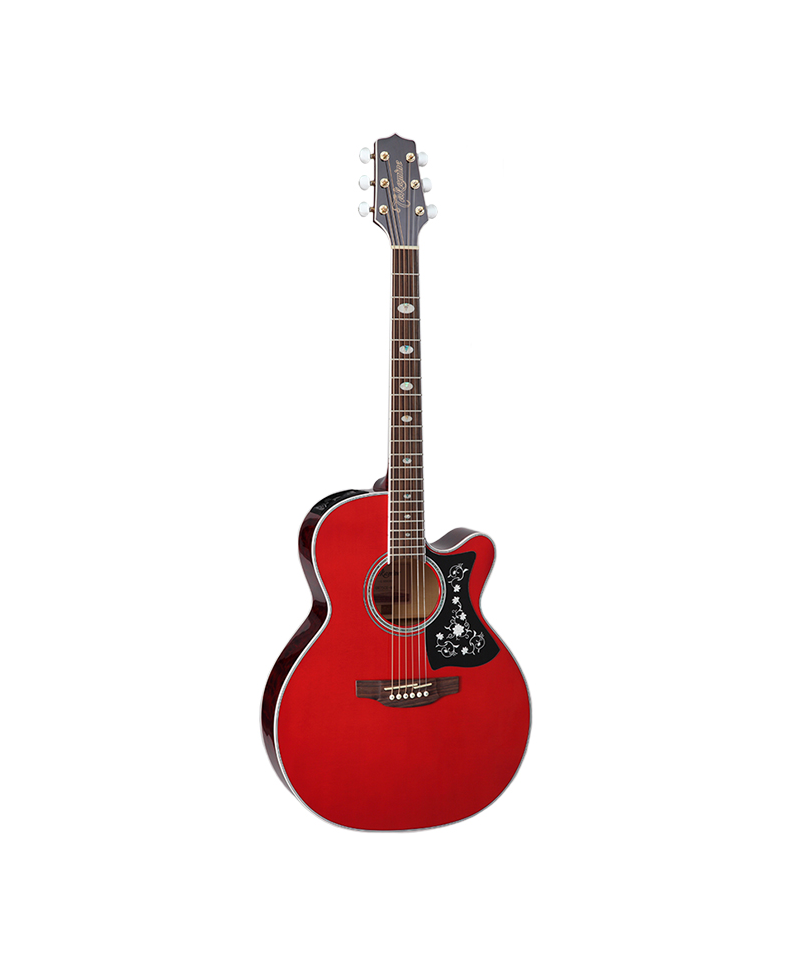 Takamine TK electronics-4OD with 3-band equalizer, Gain, integrated tuner and advanced functions (Mid Contour, Notch, EQ Bypass) allows to obtain a natural and personalized sound even live. The black battipen with white floral pattern and golden mechanics with pile keys add a distinctive touch to this big charm guitar.