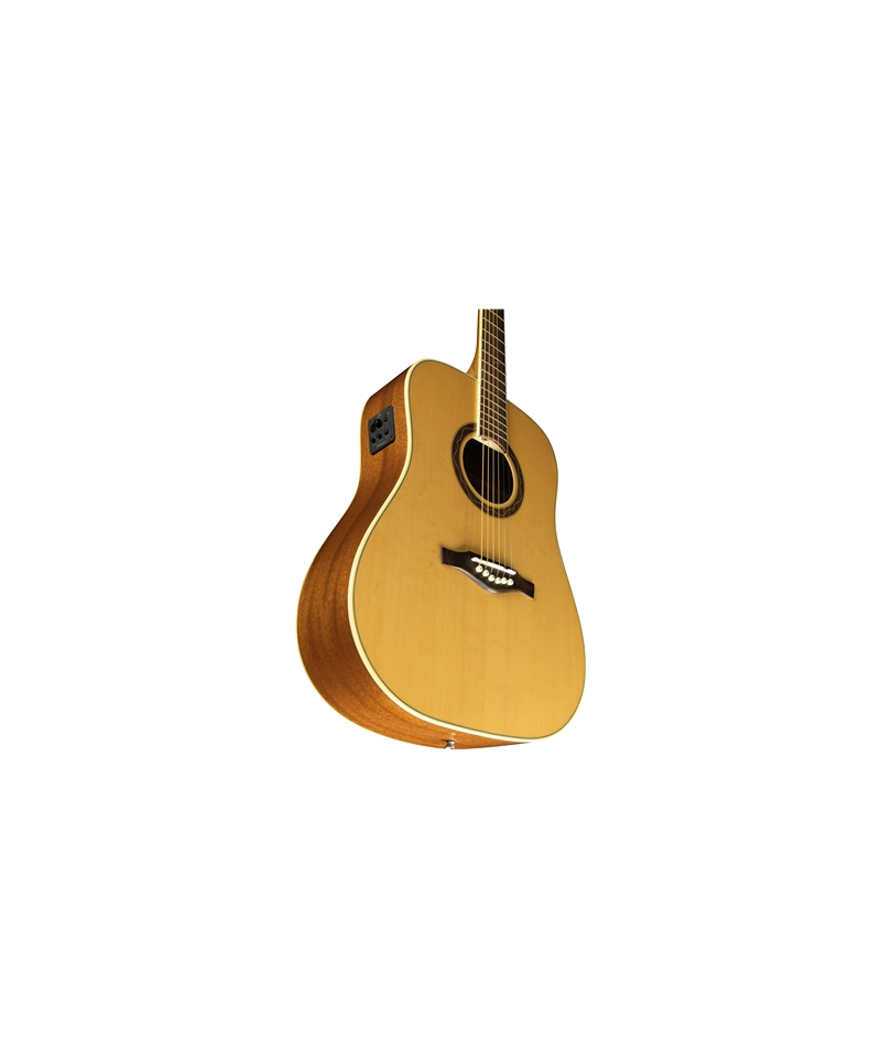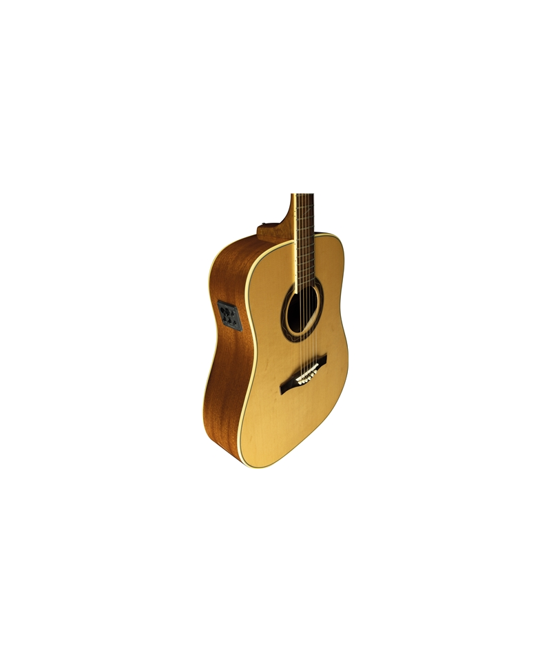 The One D EQ acoustic guitar A guitar from the Dreadnought form body that has family features like 43mm Nut and 650mm scale combined with woods like the spruce for the top, mahogany for bands and background, South American Roupana for keyboard and bridge.
