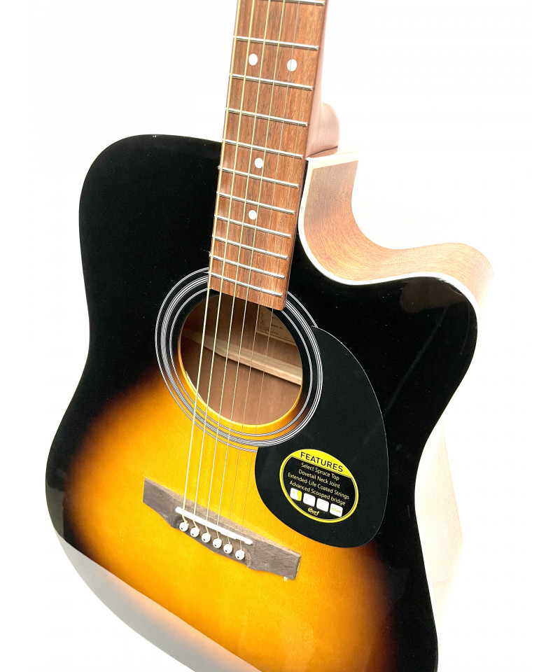 Electrified Cutaway Acoustic Model Exclusively designed for the Italian market, and offered at a very advantageous price. Derived from the standard AD880CE series, BEST-Cort Seller, this special model has a unparalleled quality relationship-Price, with bottom and mahogany bands, fir tops, new CORT CE306T electronics with tuner.