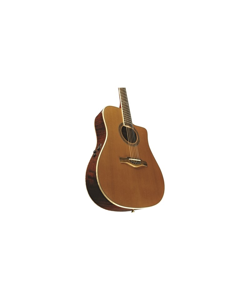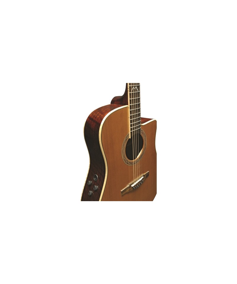 My D400CE The Eko Guitars house electrified acoustic guitar, amplified with Fishman Flex Blend system. It comes in a missing shoulder form with solid cedar top, bands and bottom in 3-layer laminated ovangkol, Okume handle and santos keyboard. Ideal for guitarist who makes live and in recording studio.