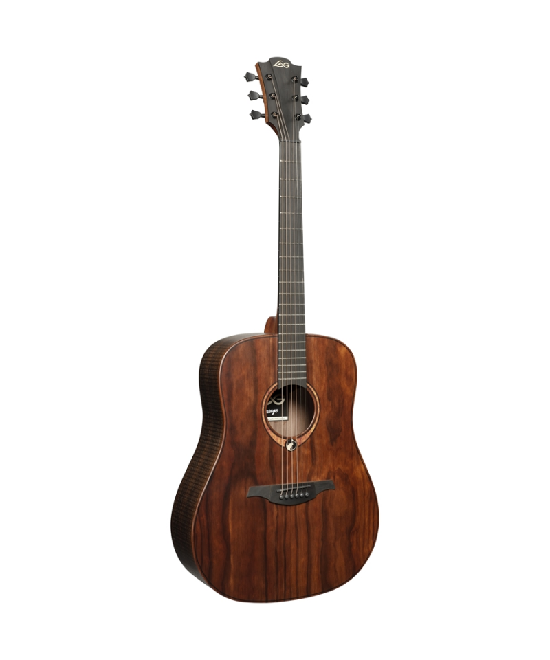 After the introduction of the first lag sauvage in 2022, the Sauvage series expands by including all sizes and also offering electrified models with popular LAG systems. The lag sauvage-D is in Dreadnought format, and stands out for the woods used. The Brankowood blade used for the solid top is a FSC certified wood (Forest Stewardship Council) and, in addition to being ecological, it is resistant to temperature changes and humidity making the guitar very stable. The smoked eucalyptus, with its rough appearance, gives a natural and wild look to this guitar. All the aesthetic characteristics that make the recognizable LAG guitars, such as the shape of the blade and the bridge, the black mechanics, the oval shape of the rosette that incorporates the new Sauvage series logo and the beveled edges with the iconic Black strip. The Dreadnought form and the woods used give this guitar a full and resonant sound. The new concept Soft Sauvage custody arrives, making this guitar suitable for every trip.