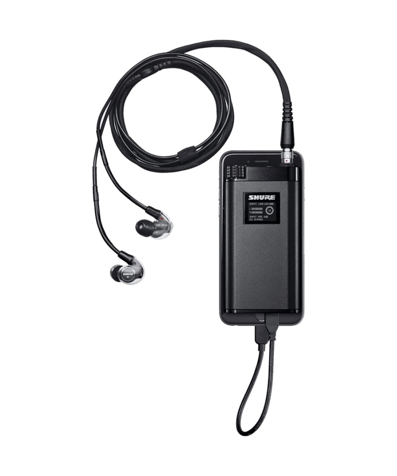 The KSE1500 electrostatic earphone system includes single driver electrostatic earphones with sound isolating technology combined with a lithium ion battery amplifier (10 hours of autonomy in analog, 7 if used for conversion D / a) Rechargeable via USB, which acts as a digital converter-USB analog (DAC) to 24bit / 96khz. A 4-band parametric EQ are available with five series and four user-defined settings and input signal level indicators. Based on electrostatic technology to the state of the art, each individual acoustically isolated micro driver has a virtually weightless diaphragm, without mass, surrounded by an electrostatic field generated by rear plates that manage the loading oscillation. This technology provides response to fastest and most accurate transients, resulting in unparalleled audio clearance and clarity. Shure KSE1500 can receive digital audio input via micro-USB or analog audio via LINE input.