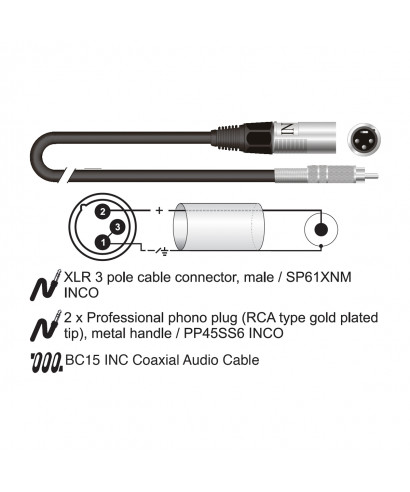 - Connectors: XLR 3 poles Male SP61XNM / RCA plug with golden tip and metal coating PP45SS6