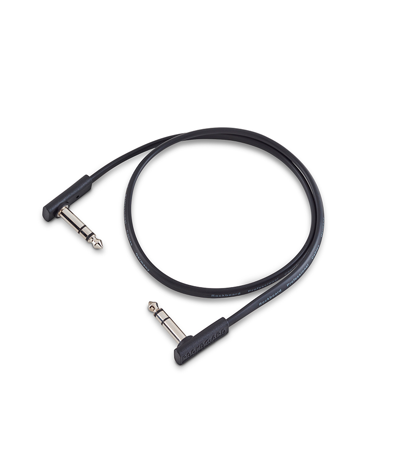 TRS Flat Cable Patch (Stereo 6.3mm Angle 90 / Stereo Jack 6.3mm Angolo 90) - Black Series - èideal for connection of controllers and expression pedals - 90-degree compact and ultra dishes connectors with chrome finish and chrome tip - Cable with rectangular profile 7x3mm - Cable: Flexible Copper Conductor 20x0,12mm + Twisted Copper Shielding 34x0,12mm + PE (Polyethylene) Signal Insulation + Outer PVC Insulation - Operating temperature: from -15C A + 70C - Length 60cm - Cable color: black.