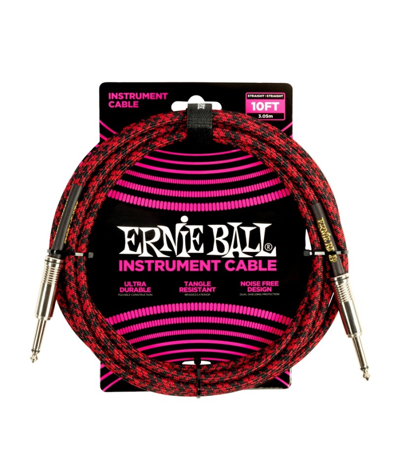 The P06394 is the 3 meter long Ernie Ball cable cable. It is composed of two TS (straight / straight) connectors and made with woven cable in red / black staining with double shield for longer durability and less noise. Ideal for guitarists and bassists who wish to have a faithful and natural signal from their own instruments.