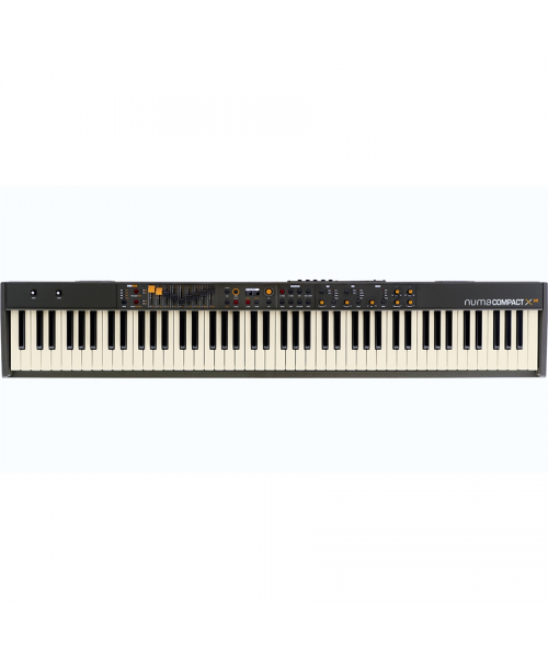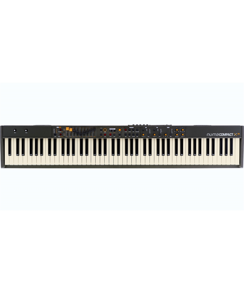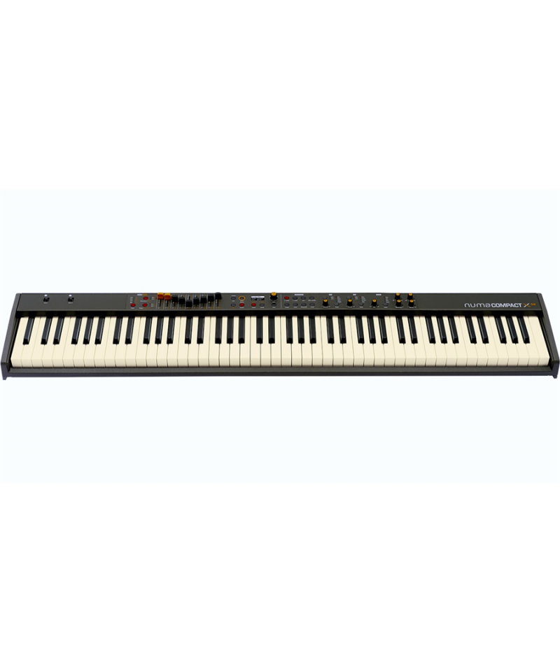 NUMA COMPACT X 2 If the result of an accurate technological upgrade and aesthetic restyling of NUMA Compact 2 x the compact Stage Keyboard of Studiologic. NUMA COMPACT X 2 If equipped with a new high-performance sound engine derived from NUMA X floor, with a greater polyphonic joint, over 140 completely renovated sounds, an extended set of control parameters, 4 sound sections, with DSP up to 6 effects Simultaneous, and a control panel with 9 multi-function sliders, to which are added internal amplification and advanced connections as a MIDI and audio USB port. The technology of this sound engine acquired directly from the NUMA X series studiologic plan and oversees the production of acoustic piano tones, using multi-TRS Stereo samples (True Sound). On Numa Compact X if the internal PCM database has been completely renovated, with the introduction of new samples of various types of acoustic plane, and the further improvement of the reproduction of typical phenomena of the plan as the resonances of the strings, the releases of the keys and the pedal; Details that enhance the effectiveness of the simulation allowing the musician greater expressive joint. This Sound Engine of Numa Compact X if simulates with an original combination of sample and DSP effects the physical modeling technology used on NUMA X floor, able to produce the categories of more typical electric plans: "Tine" in plastered bars, and "Reed" AD ANCE. The system also offers the separate control of the "tine" and Damper Noise, which allows to obtain many effective timbre variations including the characteristic digital plane sounds in FM. On this section was implemented an authentic electromagnetic body model (Tonewheel), by means of an independent sound engine, with a wide timbre variety that includes the most representative organ models of this renowned instrumental category. Definential items such as vibrato / chorus, the Rotary Speaker amplifier, and percussion are completely renewed. NUMA Compact X If in addition, thanks to the 9 sliders on the panel, it can simulate the typical Drawbar control of the original models, which allows the typhiber articulation characteristic of these instruments with a result of fine realism. This sound engine allows NUMA COMPACT if performance from real synthesizer thanks to virtual oscillators capable of generating a wide variety of waveforms, with an extended parameter set that includes the bearing, detached / linked modes, the articulation Polyphonic or monophonic, with direct control allowed by sliders and buttons on the panel that allow intuitively creating the creation of original synth stamps or the simulation of the most classic vintage sound.