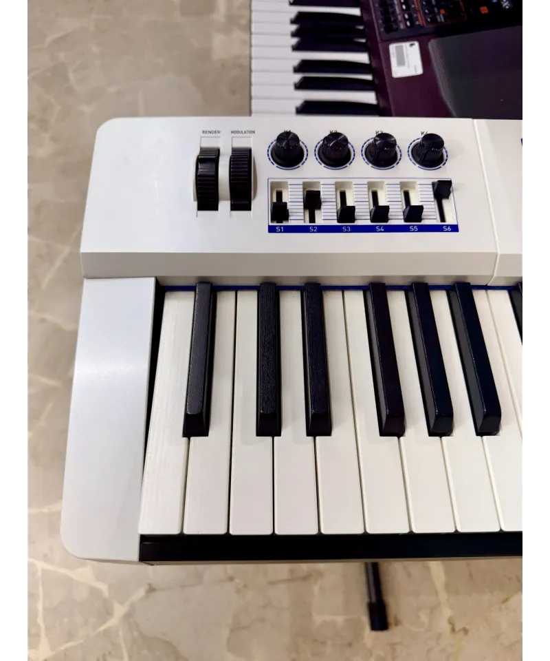 - Controller: 4 knobs, 6 sliders, pitch & mod wheel, pedal 2-In