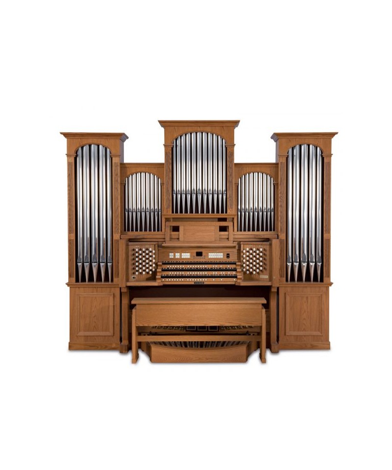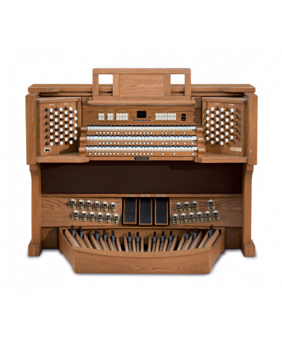 The only 500 a three-keyboard organ, a pedal board of 32 keys and 56 records + 7 orchestral logs, built in real wood and with closing dock. Elegant and prestigious, equipped with a real wood console with guy registers. The ideal tool for the professional or for the great cathedral church and has a vast internal library of registers thanks to which the user can easily customize the genus of his own instrument. Developed with the famous patented Physis technology, based on physical modeling of phenomena that intervene in the sound generation of the argan of reeds, the only 500 can generate an extremely faithful and modesible sound. Parameter adjustments are easily unable via the graphic display on the front panel of the instrument. The Tracker Action keyboard detects the touch with precision by obtaining the keys operating speed, useful for both the MIDI and orchestra section, and to obtain the Touch tracker effect, that is the correlation between the touch of the organizer and the transient of Attack of each single virtual cane.