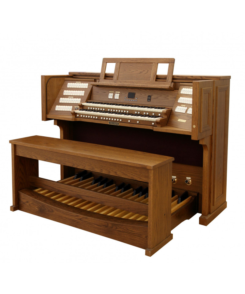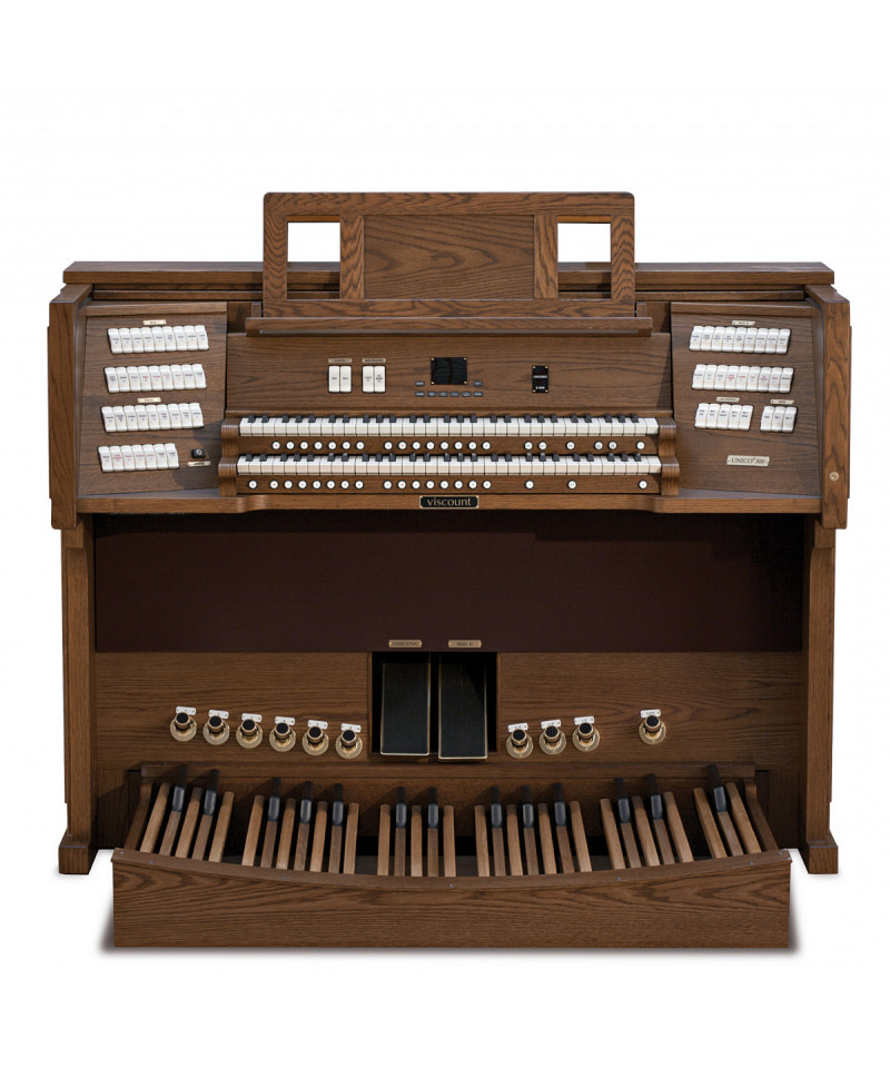 The only 300 a two-keyboard organ, a pedal board of 32 keys and 47 registers + 5 orchestral logs, built in real wood and with closing dock. Equipped with an elegant console, the ideal tool for the advanced student or for the medium or even large church. It has a vast internal log library thanks to which the user can easily customize their own instrument. Developed with the famous patented Physis technology, based on physical modeling of phenomena that intervene in the sound generation of the arganian to reeds, the only 300 capable of generating an extremely faithful and modesable sound. Parameter adjustments are easily unable via the graphic display on the front panel of the instrument. The Tracker Action keyboard detects the touch with precision by obtaining the keys operating speed, useful for both the MIDI and orchestra section, and to obtain the Touch tracker effect, that is the correlation between the touch of the organizer and the transient of Attack of each single virtual cane.