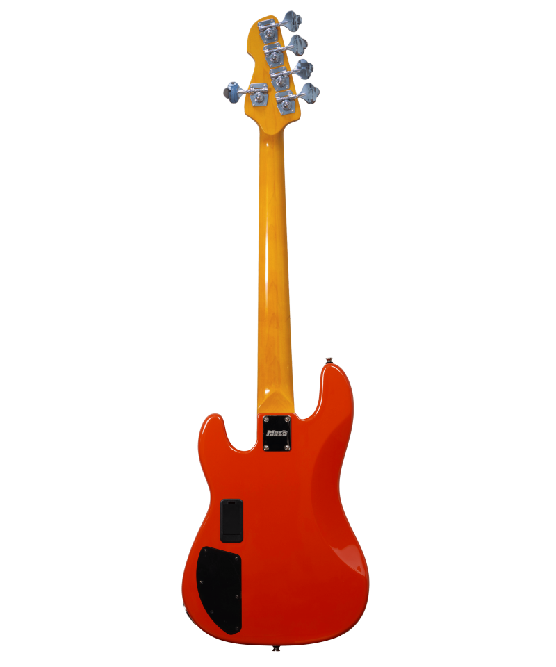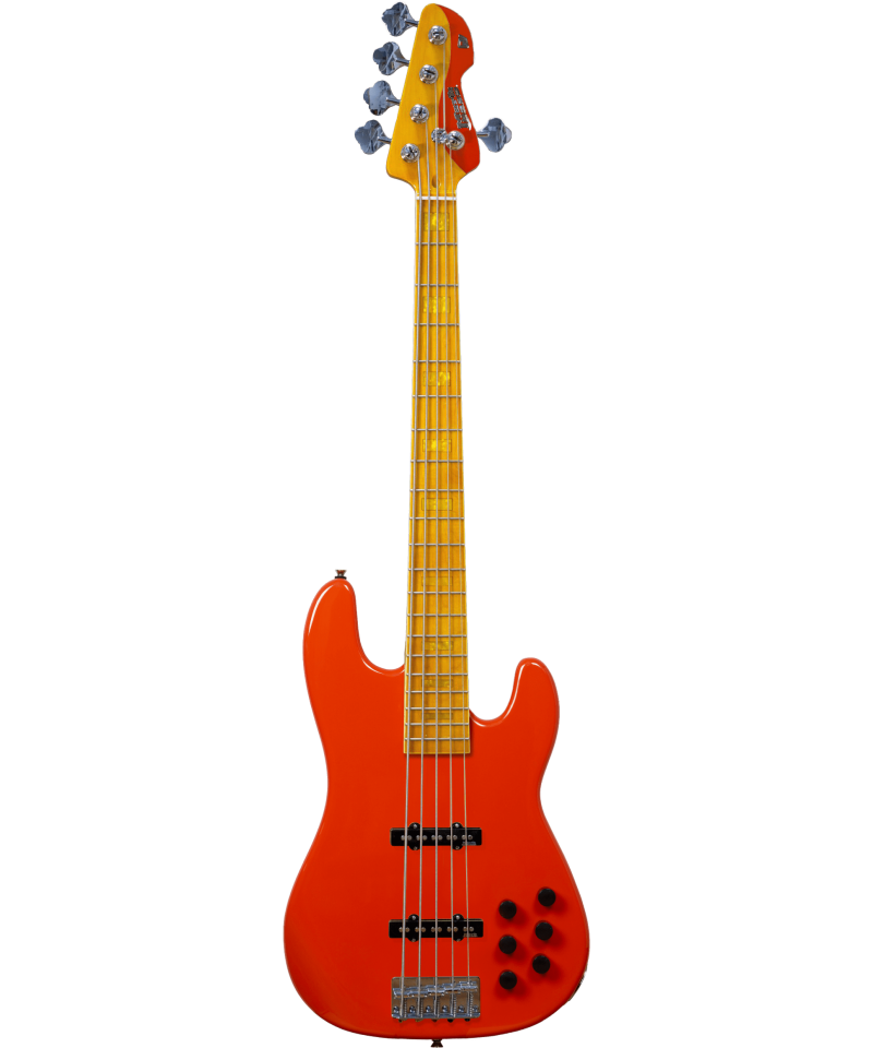 Active electric bass, 5 strings, Bolt on Markbass MB GV 5 Gloxy. Lily body, maple keyboard, two single coil pickups, 3-band MarkBass PREAMP with switch and passive tone. Fiesta Red.