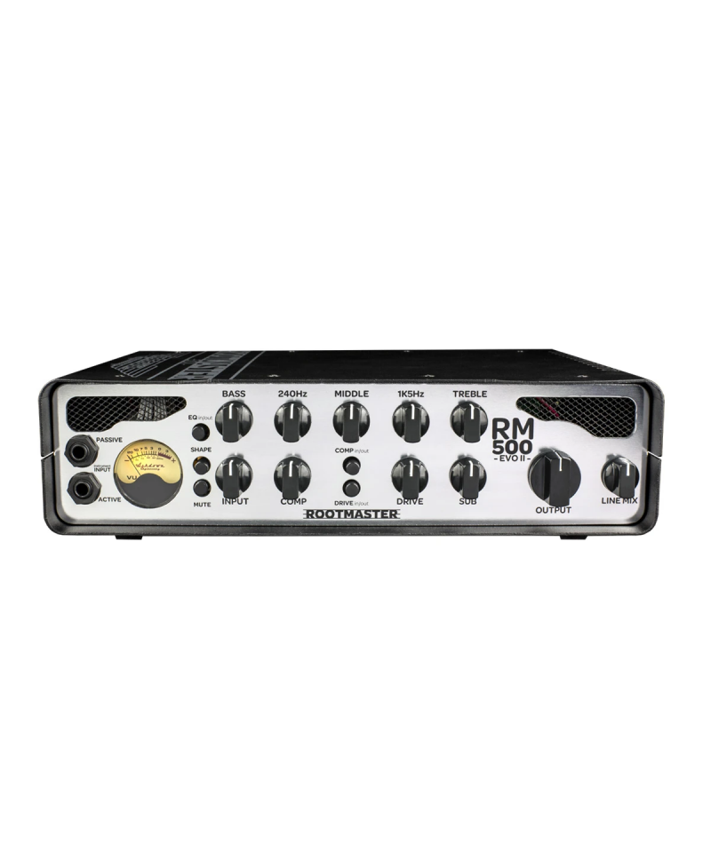 For those looking for sound, power and reliability Ashdown without weight, RM-500 Evo II The solution, with a weight of only 2,6kg but with 500 watts of power, quality and characteristics at the top of the category. Even the RootMaster EVO II range now equipped with a headphone preamplifier to practice silence. The preamplifier with a passive input jack and active for use with high and low output tools, creates a clear signal path that allows you to optimize the input level using the Ashdown Vu Meter. With a signal to its optimal level, exploit the rich features designed to improve your sound as the Shape button, the 5-band EQ and the compressor. Drive control, as always, offers a delicious over-Drive with valve emulation, while sub harmonic controls add additional substance to sound. The RootMaster EVO II heads also have a convenient audio deactivation button. There are even more interesting when the audio is deactivated, the Ashdown Engineering Vu Meter passes from orange to cold blue, creating the perfect atmosphere on stage in set changes.
