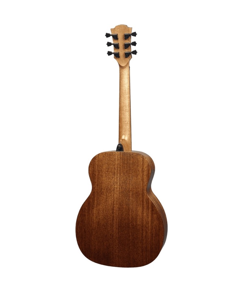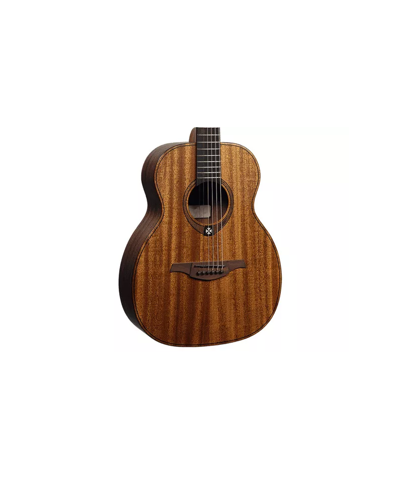 Top, bottom and bands and handles are made of Khaya mahogany. This wood gives a stamp rich in low and harmonious, with medium present. The bridge and keyboard are made of Branko Wood (Brownwood), ecological and resistant wood to changes in humidity and temperature made in collaboration with the Blackwood Tek. The 600mm scale makes this guitar easy to play as well as handy and comfortable during transport. However, the sound quality is not compromised: thanks to the construction characteristics this Travel Guitar offers the sound of a full-size. The system