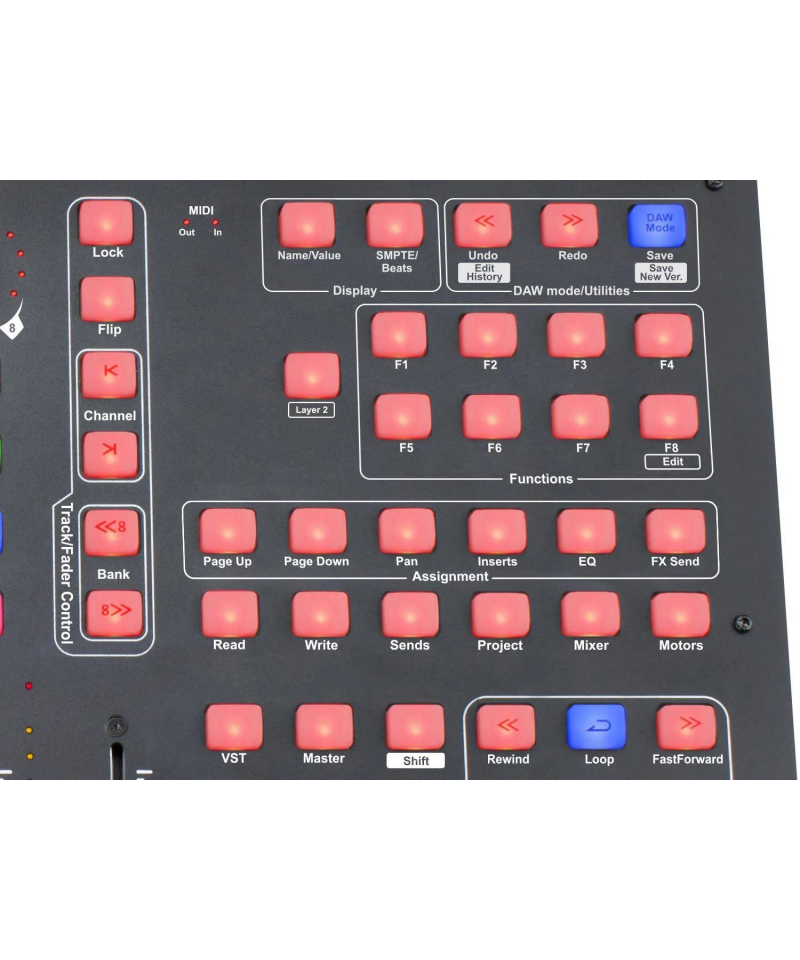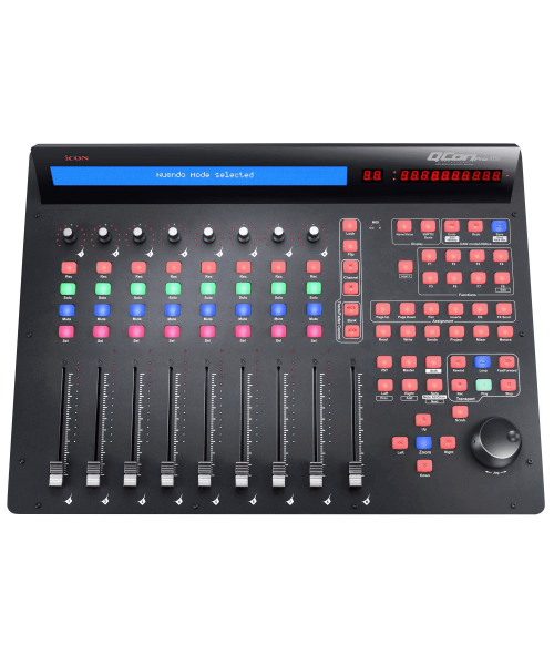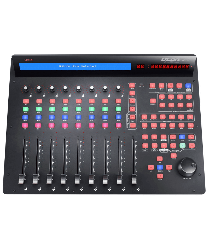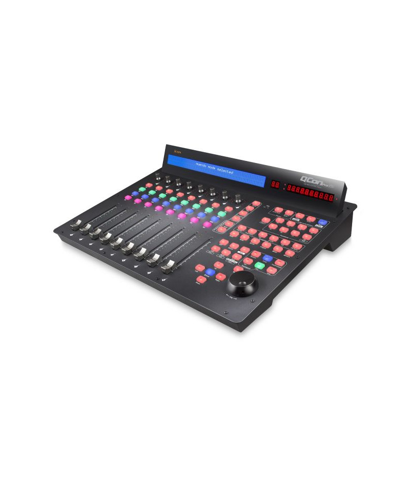 Icon Pro Audio Qcon Pro G2 A universal eight-channel control surface with Mackie Control and HUI control to support the main DAW. Whether you are monitoring or mixing, Qcon Pro G2 offers intuitive tactile control over your session. Set your levels, take the EQ and effects, record automation, Run punch-In and punch-Out of the recordings, all with the fingertips. The Qcon Pro G2 features nine motorized faders, eight push-function push encoders, 78 buttons, Jog Shuttle Wheel and 2 pedal connectors. The 12-segment LED level meters are supplied for each channel and a large backlit LCD screen displays the channel names and parameter values. E'Also available a 12-segment LED display for SMPTE or Beat Clock MIDI.