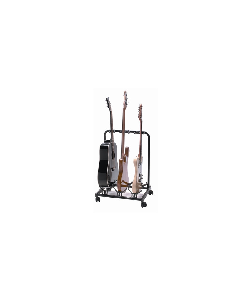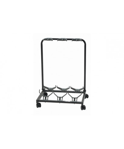 Multiple universal support for 3 guitars. The lower part of the supports is shaped to adapt to any type of acoustic or electric guitar and are covered with a layer of soft rubber hold the instrument locked, without the risk that painting is damaged. The handle support design makes it possible to position the guitar in both sides.