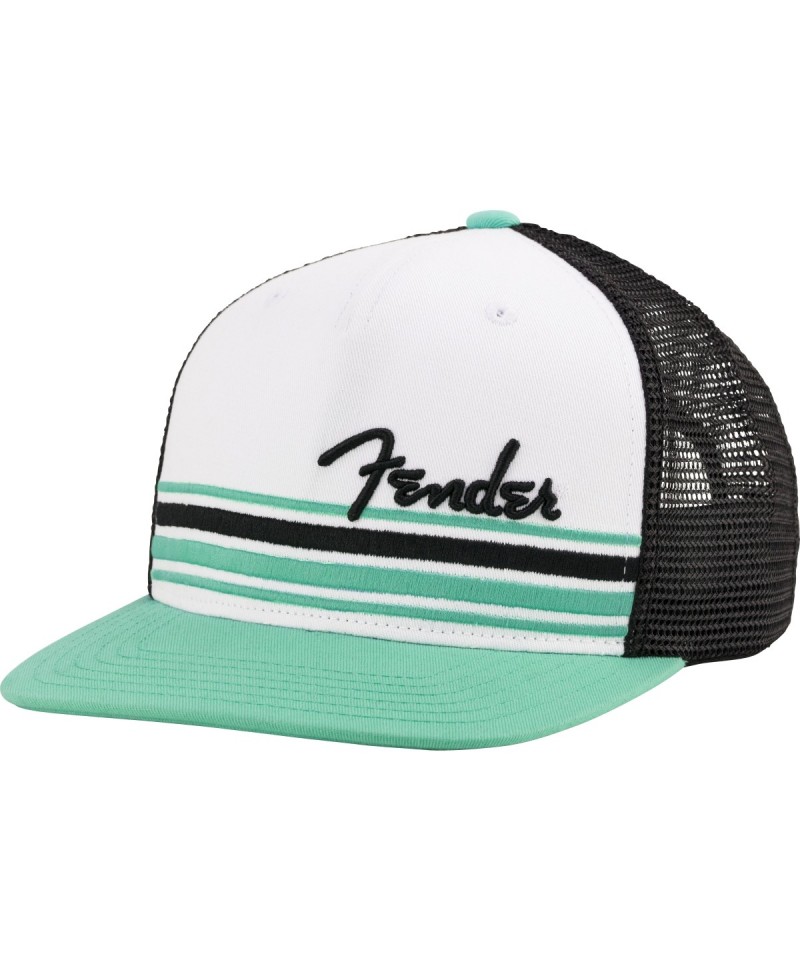 Show your fender fender with this flatbill hat. Characterized by the fender spaghetti logo, along with black stripes and water green, this hat is perfect for accessoriale your stage outfit.