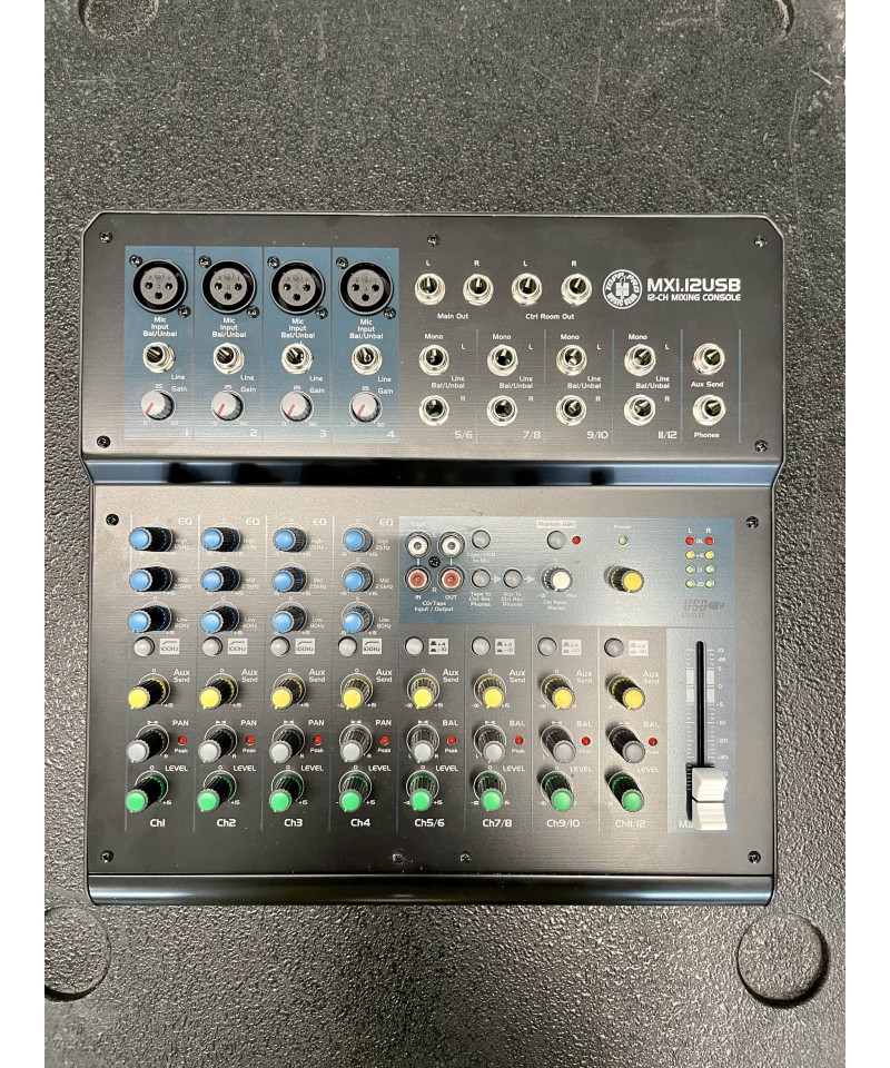 - Inputs: 12 Input Mixer 4 Mic / Line Inputs, 4 Stereo Line Inputs, RCA Tape Inputs / Outputs