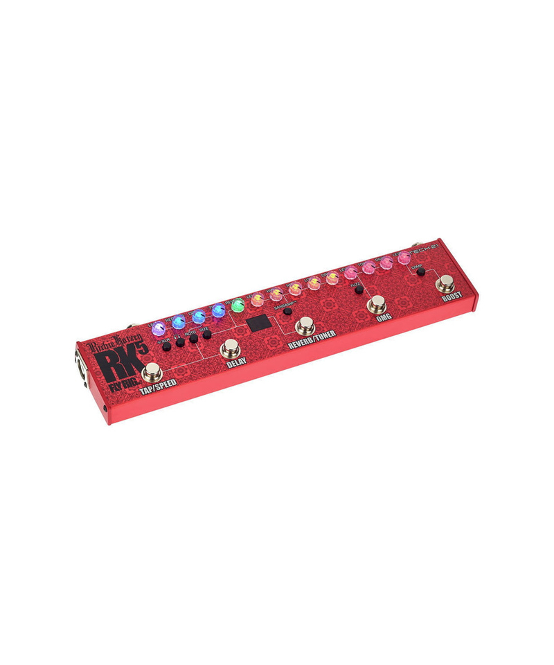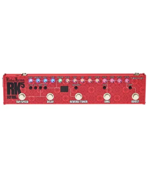 The Fly RK5 V2 Rich Richie Kotzen Signature was developed in close collaboration with Richie. The RK5 V2 maintains the same delay with TAP TEMPO, a powerful Boost and the OMG OVERDRIVE SIGNATURE of Request. The new features include an independent reverb with the choice of the environment size, a rotary speaker mode, compression, fuzz, a tuner, headphone connection and an XLR output. Another difference an ON / OFF button for the SANSAMP section