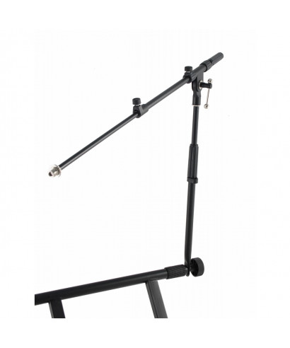 An intelligent, practical and stable solution to add a rod to a keyboard with round tubular. Adjustable, adjustable in height and in length, inserts into the tubular of your keyboard support ensuring stability and ease of assembly and disassembly.