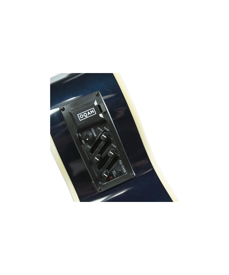 Mini type acoustic guitar-jumbo. Cutaway. Cassain fir. Headband and background in Agathis.Acero. Handle and bridge in 'Compound Rosewood'. Pallet die-Chrome cast. EQ7545 preamplifier active with volume control, presence and 3-band equalizer. Blue infinite