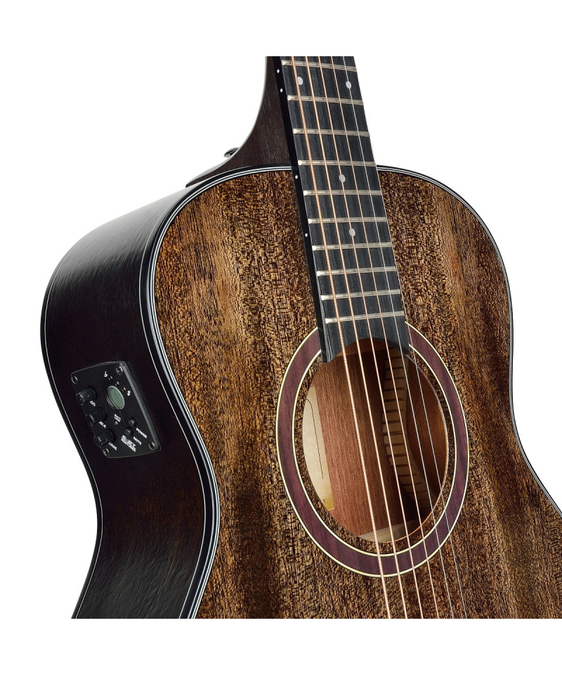 The BackRoad series composed of traveller acoustic guitars with a reduced scale size, fully built in mahogany and embellished with open-pore finishes. Light, compact, beautiful and resistant, available in passive or amplified version with PREAMP E2-T. Wherever you decide to go, your backroad you accompany you.