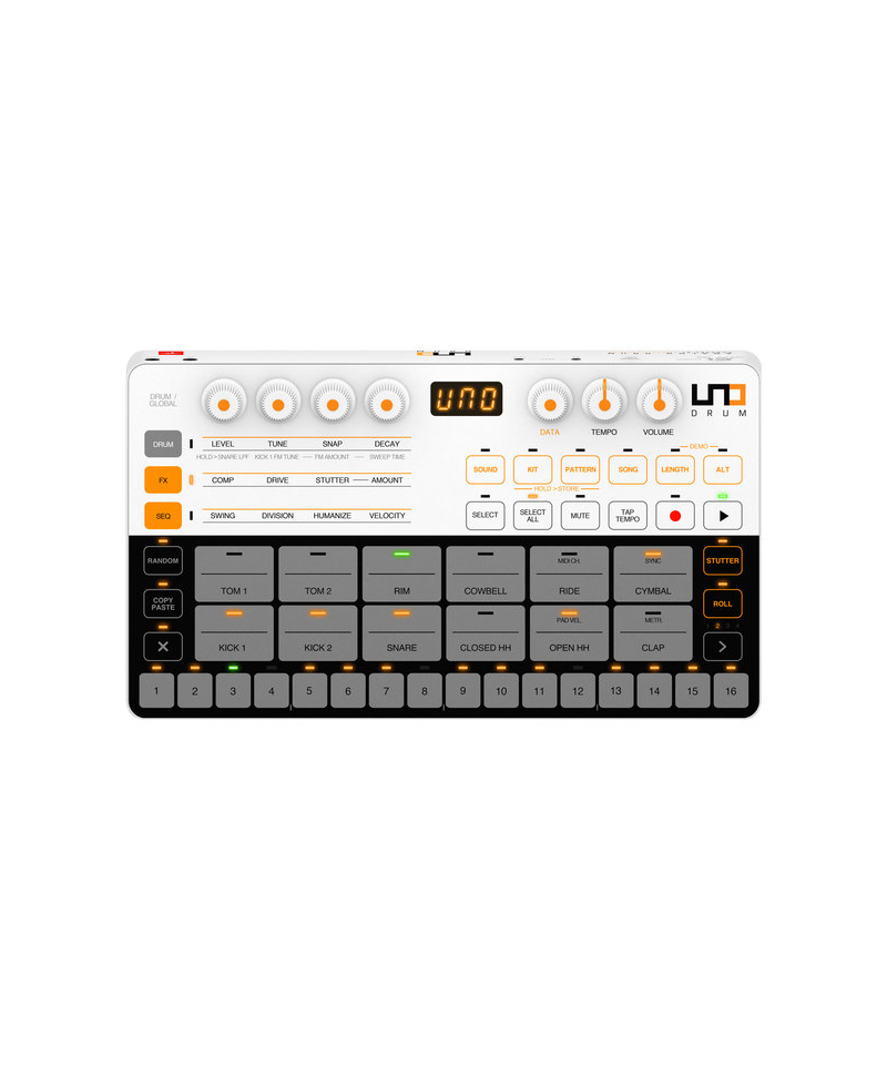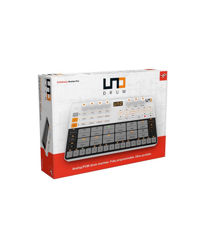 IK Multimedia has already done an extraordinary thing with the analog synthesizer one synth, and now repeats it with a drum. This drum machine from a deadly sound contains six analogue items, 54 PCM samples derived from SampleTank and a stuance of pleasant effects in the ear. A tailor-made drum for performances, thanks to 12 touch sensitive pads, 4 dynamic encoders and a 64-step built-in sequencer. Add Stutter, Random and Roll Effects, and you are guaranteed a unbridled and fun ride. Get also USB, MIDI and Pass-Through audio for simple integration of the instrumentation. E Can you believe that a Drum is powered by the bus? A ik multimedia drum a must for analog synth enthusiasts. The most important element of any serious Drum Machine the quality of its sounds, and a drum full of excellent sounds. Create fat and incisive sounds with six real analogue items: speakers, helpline, applause and hi-Hat, designed by soundmachines analog gurus.
