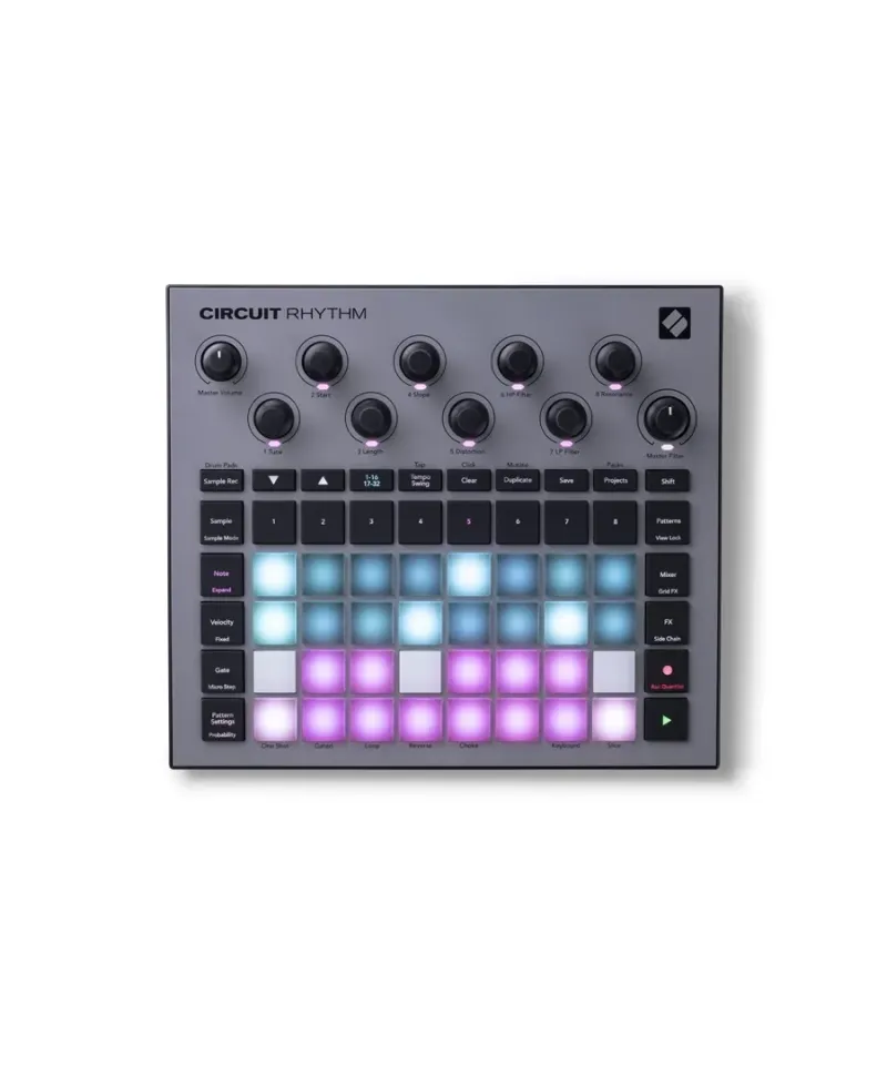 Novation Circuit Rhythm It is the definitive standalone groovebox for Beatmaker, manufacturers and Live Performer. Champion, create pattern, plays and launches beat anywhere without the need for computers! Thanks to 8 traces of sample sequencing, integrated effects, ultra workflow-quick and excellent portability, circuit rhythm transforms every idea into a professional beat, both in the studio and on-the-go.